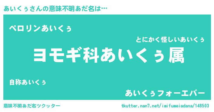 | 肩書あだ名 | 『あいくぅ上級大将』『あいくぅ御曹司』 |