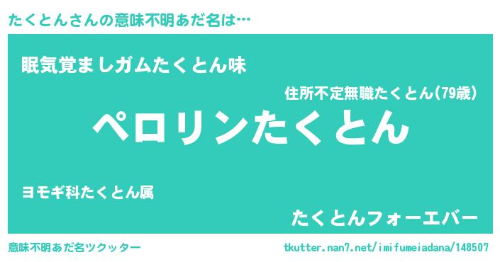 | 自動車の名前っぽいあだ名 | 『プリタク』『タンR』『タスラー』 |