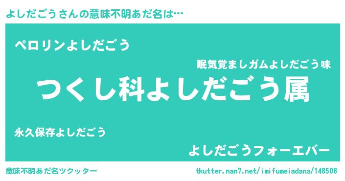 | ヒーロー風カッコイイあだ名 | 『スーパーヨシダゴウ』『ネオヨシダゴウ』 |