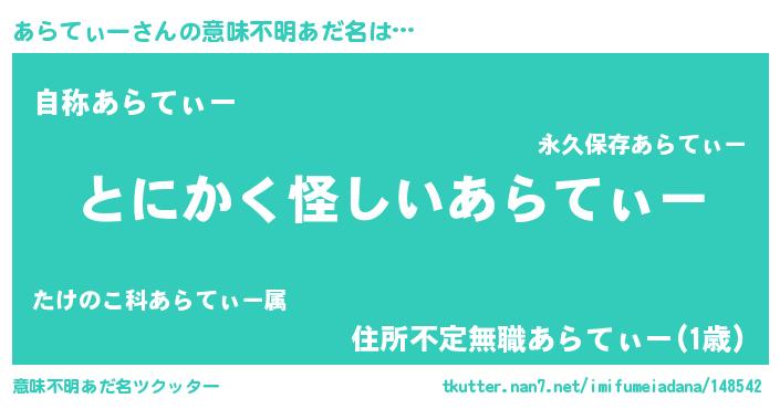 | 女子向けラノベタイトル風あだ名 | 『あらてぃーの卵を拾いまして』 |