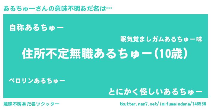 | 胡散臭い通販商品みたいなあだ名 | 『あなたにだけ特別に提供する100年もののヴィンテージワイン…その名も「あるちゅー」』 |