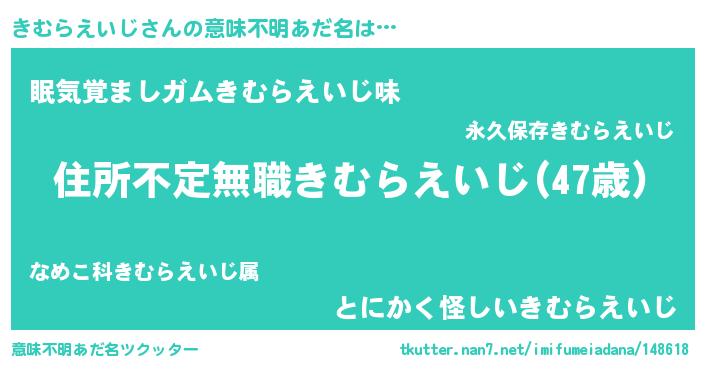 | 男性向けラノベタイトル風あだ名 | 『魔弾の王ときむらえいじ』 |