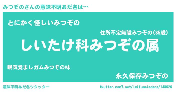 | 男性向けラノベタイトル風あだ名 | 『緋弾のミツゾノ』『ミツゾノスレイヤー』 |