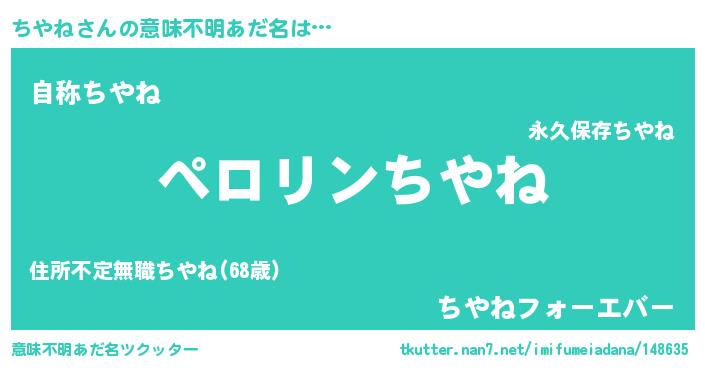 | 男性向けラノベタイトル風あだ名 | 『ちやねの憂鬱』『魔法科高校のちやね』 |