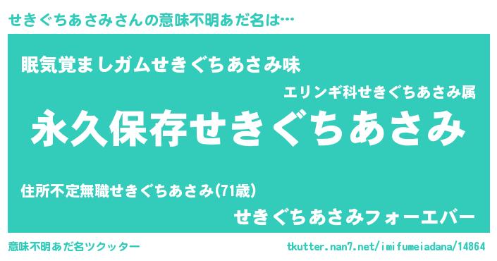 | 胡散臭い通販商品みたいなあだ名 | 『前代未聞の健康食品…その名も「せきぐちあさみ」』 |