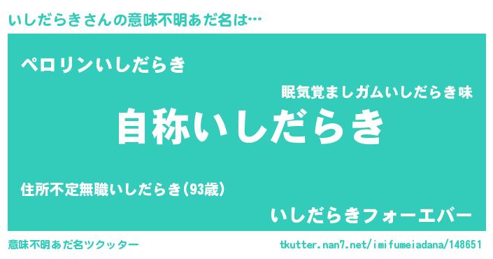 | 男性向けラノベタイトル風あだ名 | 『Re:いしだらきから始める異世界生活』 |
