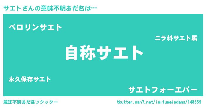 | ヒーロー風カッコイイあだ名 | 『ウルトラ戦士サエト』『スーパーサエト』 |