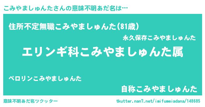 | ヘコむあだ名 | 『こみやましゅんた(苦笑)』『こみもー』 |