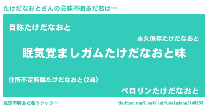 | ヘコむあだ名 | 『たけっふぃ~』『たけだなおと(笑)』 |
