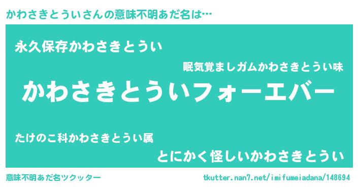 | 肩書あだ名 | 『かわさきとうい大統領』 |