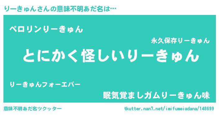 | 男性向けラノベタイトル風あだ名 | 『りーきゅんの嫁は女の子じゃないと思った?』 |