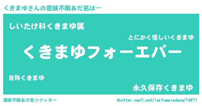 | ファンタジー風あだ名 | 『エターナルクキマユー』『ゼクキトゥ』 |