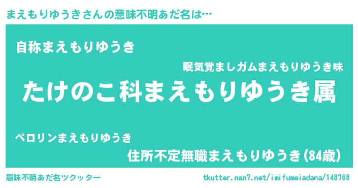| 肩書あだ名 | 『まえもりゆうき上級大将』 |