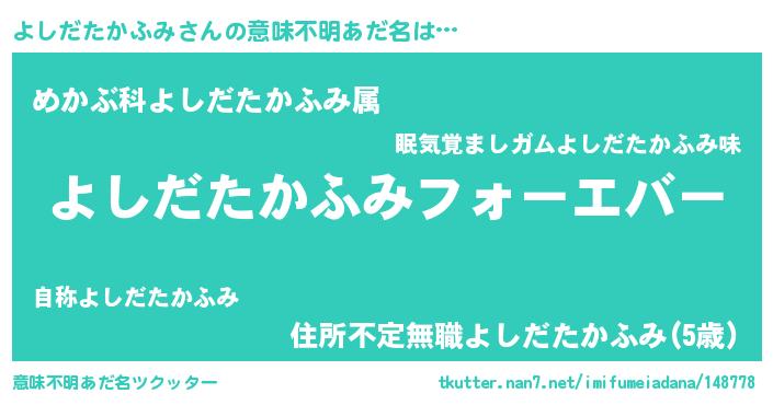 | ファンタジー風あだ名 | 『エターナルヨシダタカフミー』 |