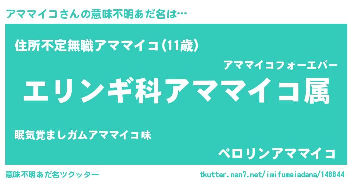 | 男性向けラノベタイトル風あだ名 | 『緋弾のアママイコ』『アママイコの憂鬱』 |