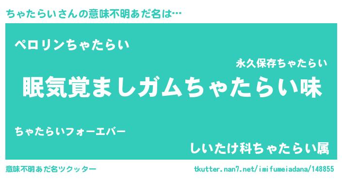 | ヘコむあだ名 | 『ちゃっふぃ~』『ちゃたらい(震え声)』 |