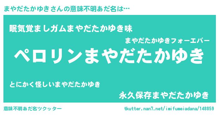 | 男性向けラノベタイトル風あだ名 | 『まやだたかゆきの憂鬱』 |
