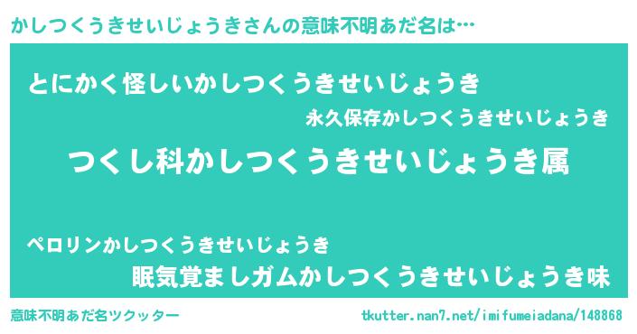| 料理風あだ名 | 『かしつくうきせいじょうきとほうれんそうの和風グラタン』 |
