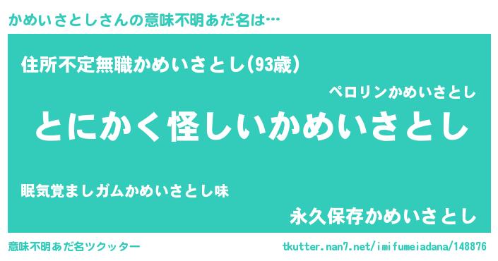 | 欧米人風あだ名 | 『ウサインかめいさとし』 |