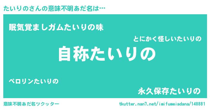 | ヘコむあだ名 | 『たいりの(爆)』『たいお』 |