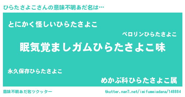 | ポケモン風あだ名 | 『ヒックウザ』『ヒヒラタサヨコ』 |
