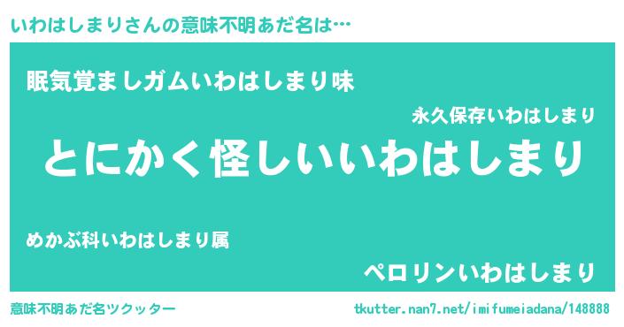 | 男性向けラノベタイトル風あだ名 | 『いわはしまりに滅ぼされるだけの簡単なお仕事です』 |