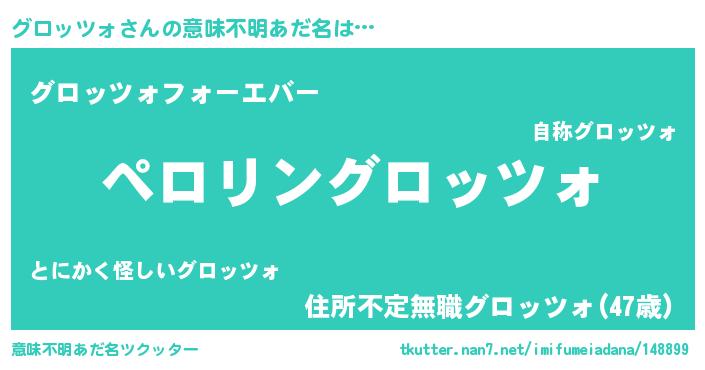 | 男性向けラノベタイトル風あだ名 | 『グロッツォの憂鬱』『緋弾のグロッツォ』 |