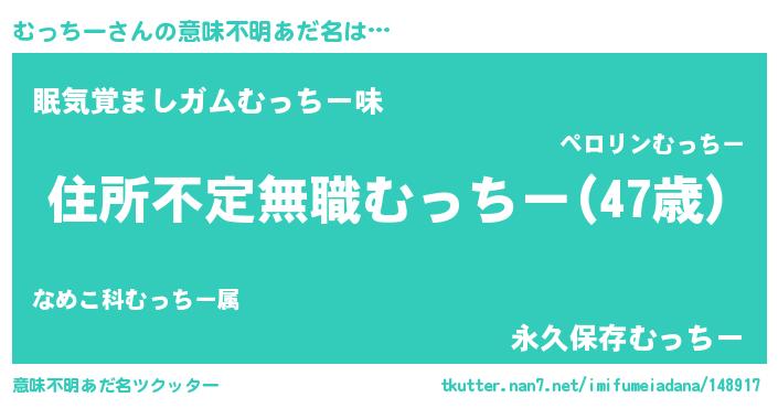 | ヒーロー風カッコイイあだ名 | 『仮面ムッダー』『慈愛の使者むっちー』 |
