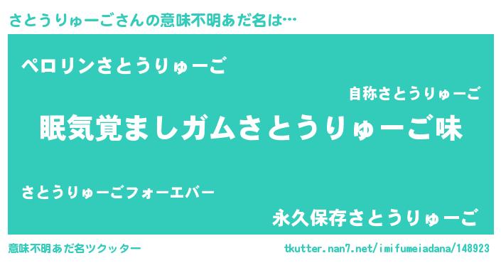 | 胡散臭い通販商品みたいなあだ名 | 『モンドセレクションを受賞した隕石のかけら…その名も「さとうりゅーご」』 |