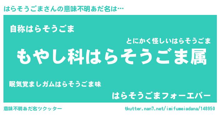 | 男性向けラノベタイトル風あだ名 | 『転生したらはらそうごまだった件』 |
