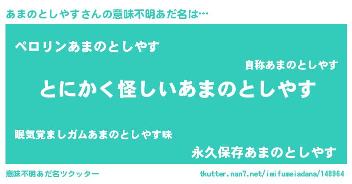 | 男性向けラノベタイトル風あだ名 | 『あまのとしやすに滅ぼされるだけの簡単なお仕事です』 |