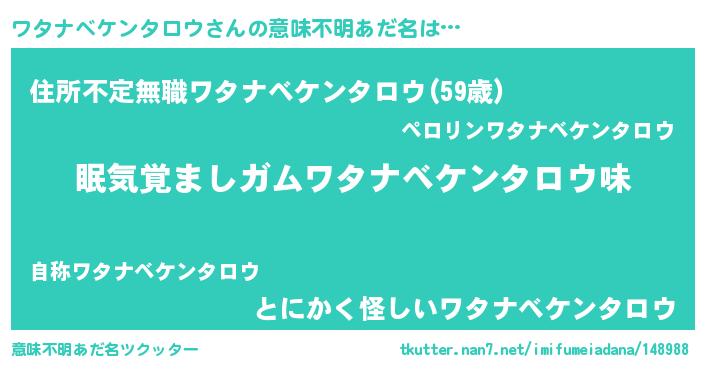 | ヒーロー風カッコイイあだ名 | 『慈愛の使者ワタナベケンタロウ』 |