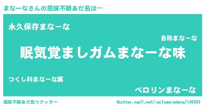 | ヘコむあだ名 | 『まなーな(震え声)』『まなふぇ~』 |