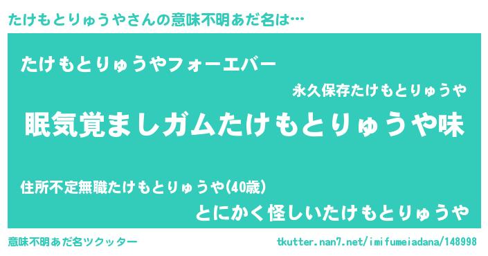 | 女子向けラノベタイトル風あだ名 | 『たけもとりゅうや恋絵巻』 |