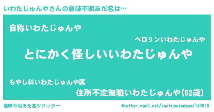 | 男性向けラノベタイトル風あだ名 | 『いわたじゅんやの嫁は女の子じゃないと思った?』 |