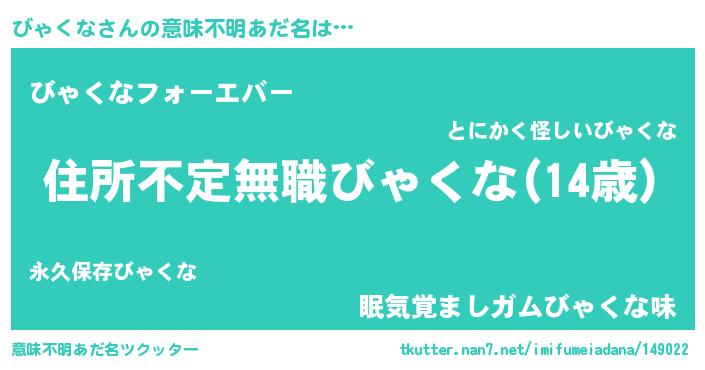 | 男性向けラノベタイトル風あだ名 | 『この素晴らしい世界にびゃくなを!』 |