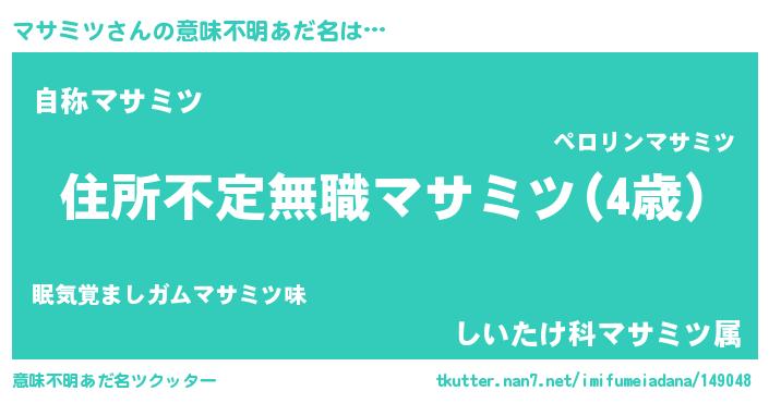 | ヒーロー風カッコイイあだ名 | 『仮面マサダー』『超時空戦士マサミツ』 |