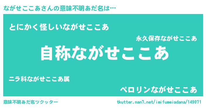 | 欧米人風あだ名 | 『ケンブリッジながせここあ』 |