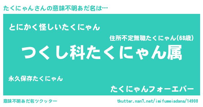 | ヘコむあだ名 | 『たくっぺ』『つくし』『たくもー』 |