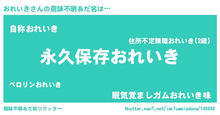 | 男性向けラノベタイトル風あだ名 | 『おれいきという概念が存在しない退屈な世界 』 |