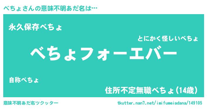 | ヒーロー風カッコイイあだ名 | 『ウルトラべちょマン』『ネオベチョ』 |
