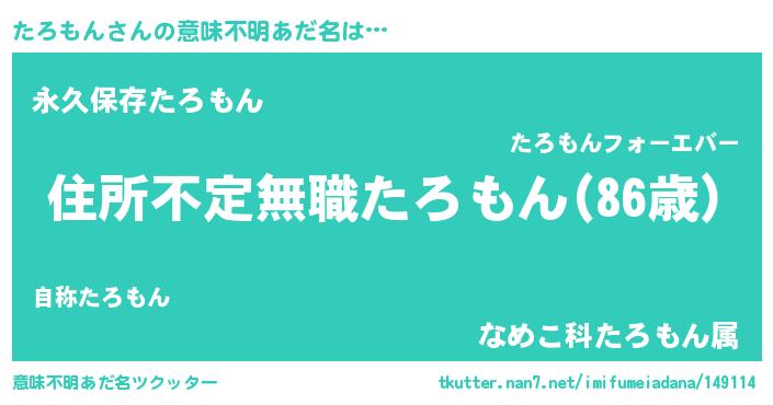 | 男性向けラノベタイトル風あだ名 | 『この素晴らしい世界にたろもんを!』 |
