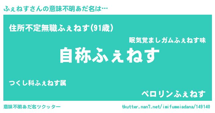 | 男性向けラノベタイトル風あだ名 | 『Re:ふぇねすから始める異世界生活』 |