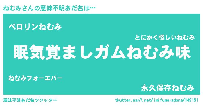 | ヒーロー風カッコイイあだ名 | 『慈愛の使者ねむみ』『スーパーネムミ』 |