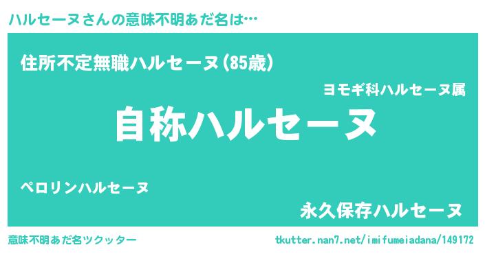 | ヒーロー風カッコイイあだ名 | 『最強戦士ハルセーヌ』『仮面ハルダー』 |