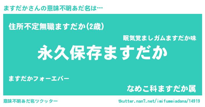 | 男性向けラノベタイトル風あだ名 | 『ますだかという概念が存在しない退屈な世界 』 |