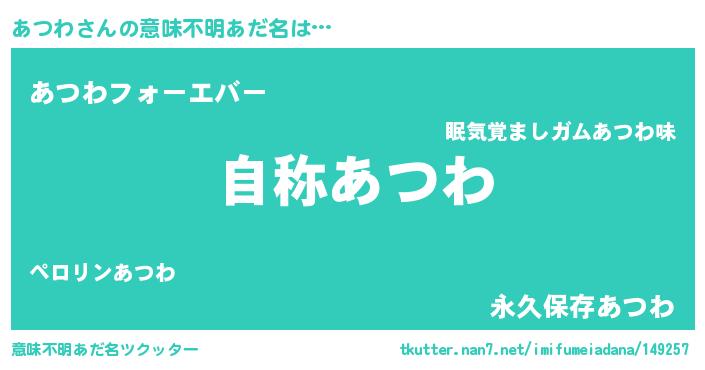 | ヘコむあだ名 | 『つくし』『あつわ(笑)』『あつっ子』 |