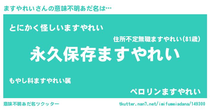 | 男性向けラノベタイトル風あだ名 | 『ますやれいという概念が存在しない退屈な世界 』 |