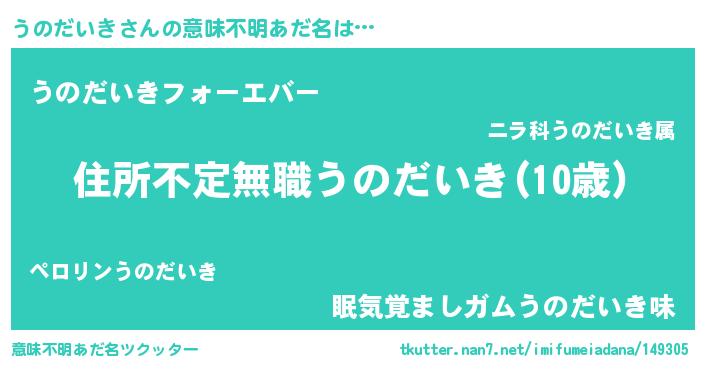 | 男性向けラノベタイトル風あだ名 | 『この素晴らしい世界にうのだいきを!』 |