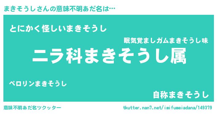 | 男性向けラノベタイトル風あだ名 | 『まきそうし~年齢イコール彼女いない歴の魔法使い~』 |
